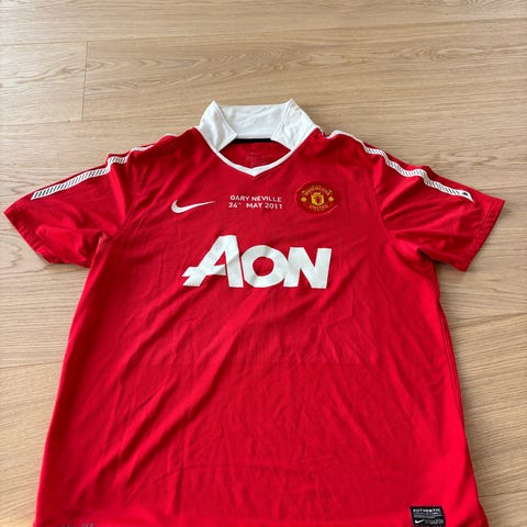 Nike Manchester United fodboldtrøje i størrelse XL til mænd. Trøjen er rød med sorte detaljer og har tryk med Vodafone som sponsor.