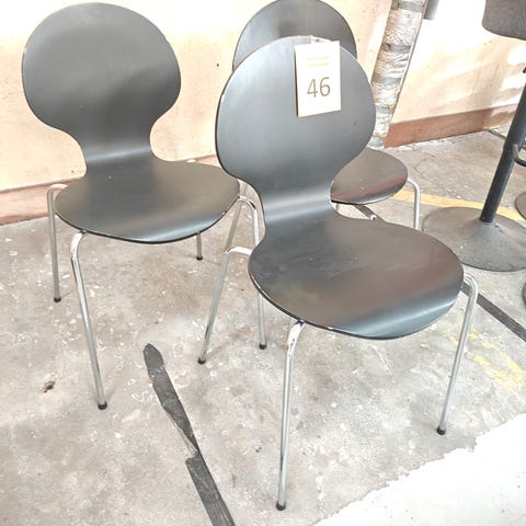 2 stk skalstole i mørkegrå plast. I pæn stand. Brugte