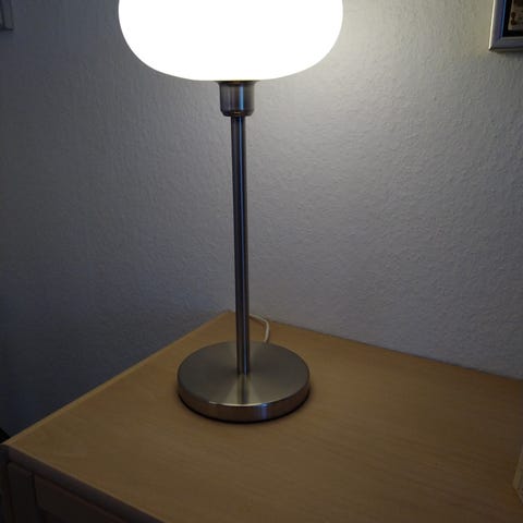 Fin stander og bordlampe er begge med glas skærm