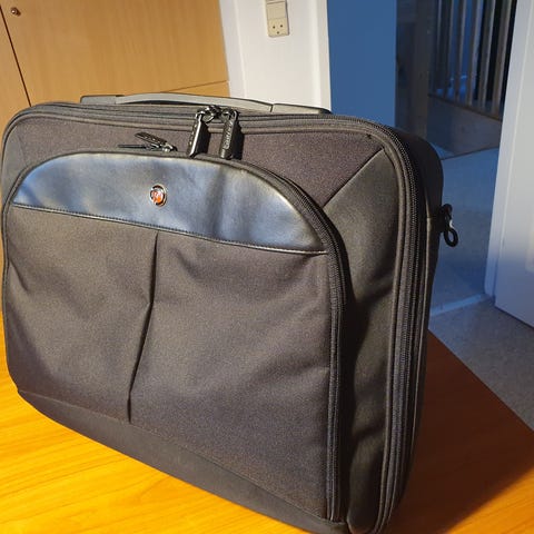 American Tourister taske i plast til unisex. Tasken har flere rum og lommer til opbevaring, herunder plads til elektroniske enheder og tilbehør. Den har en justerbar skulderrem og bærehåndtag for nem transport.