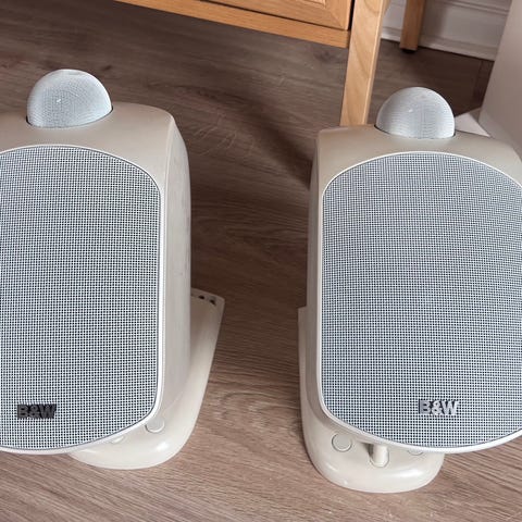 Højttalerne er velholdte, dog med lidt ridser. De er altid blevet passet godt på. Ideelle til dig, der vil have klassisk B&W lyd i en mindre pakke.