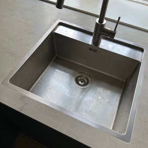 Den sorte farve giver et moderne og eksklusivt udtryk, der passer perfekt ind i både moderne og minimalistiske køkkener. Vasken er fremstillet i slidstærk harpiks, som er modstandsdygtig over for ridser, pletter og daglig brug. Den indlejrede installationstype sikrer en pæn og diskret montering i køkkenbordpladen.