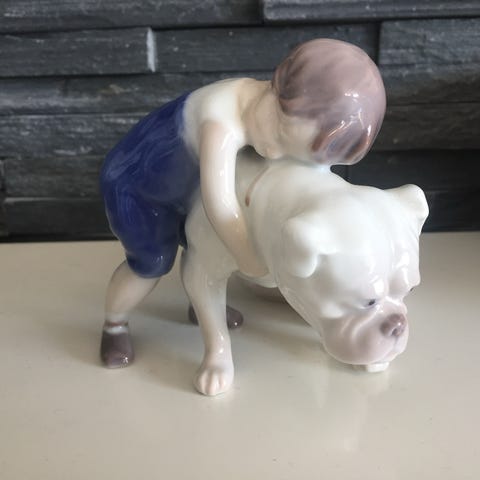 Bing & Grøndahl figur nr. 1790 – dreng med hund – perfekt stand