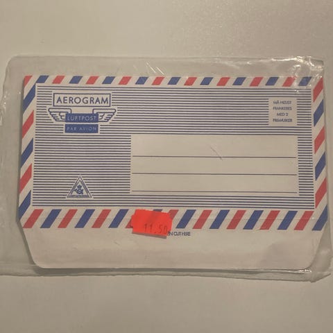 Mappe med 9 dobbelte ark, 1 linjeark og 6 kuverter.