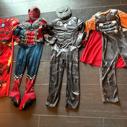 kattedrengen med maske og tilbehør der spiller kattedrengens kendings melodi. Skellet som lyser i mørke med hætte.