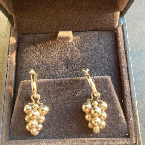 Små sølv druer sidder i en tæt klynge i disse earcuffs, som fortolker Georg Jensens originale druemotiver på en kreativ og nutidig måde. Earcuffsne er udført i oxideret sterlingsølv med en oxideret finish, som giver smykkerne dybde og kontrast. De sidder behageligt på øret, og er både smukke enkeltvis og som et sæt.
