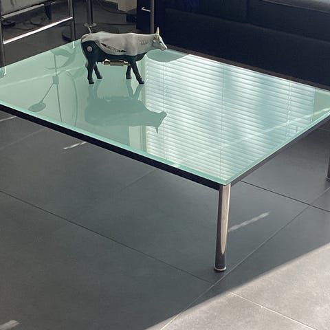 Særligt smukt bord i glas. Bordet har stået i Birger Christensen (butik) og er et custom made LAVIN bord.
