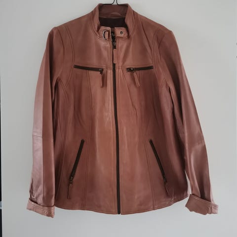 Flot lækker skindjakke fra No. 1 by Ox. Den er i en smuk cognac farve.