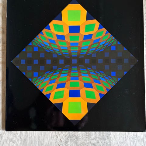 Monografisk tryk str. 27 x 27 cm af den ungarske kunstner VASARELY. Klar til indramning. Købt i Foundation VASARELY i Aix-en-Provence. Ubeskadiget. Pris 200 kr. (+ evt. forsendelse)