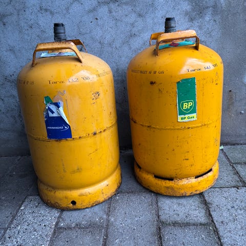 Gasflasker, 3 stk. Indholds mængde ukendt. Brugt