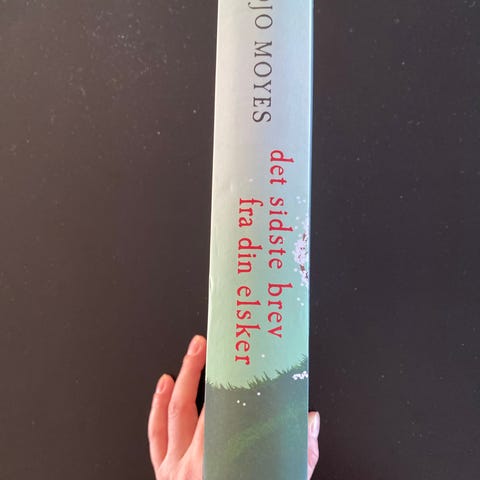 Jojo Moyes Sommeren jeg mødte dig bog. Roman på dansk. Indeholder historien om sommeren, hvor hovedpersonen møder en betydningsfuld person. Bogens omslag har en kombination af grøn, hvid og rød farve.