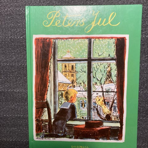 Peters jul, J. Krohn, Peters jul. trykt i 1987. Lille mus har klippet i den første side