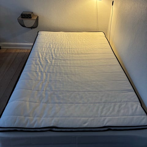 Boksmadras fra IKEA med ben. Sengen er i fin stand og sælges af pladshensyn. Aftagelige ben.
