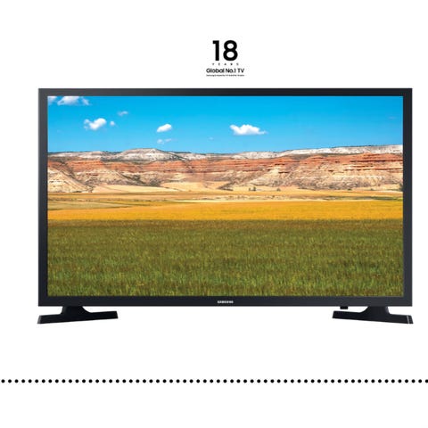 Samsung 43TU7075 QLED-tv med en skærmstørrelse på 55 tommer. Fjernsynet har en flad skærm og sort farve. Modellen er designet til almindelig hjemmebrug.