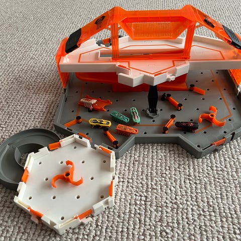 Kæmpe Hexbugs bane med 6 biller (3 stadig med fungerende batteri i) og masser af ekstra dele.