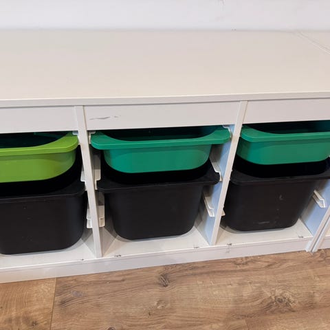 Ikea trofast med plads til 9 små eller 3 små & 3 store kasser.