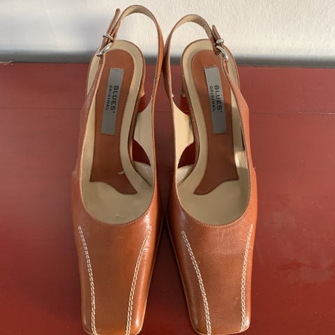 Valleverde højhælet slingback sko i størrelse 35. Skoene er sorte med dekorative detaljer og har en lukket spids. Skoene har aldrig været brugt - se det helt manglende slid på hælen, men fordi der er mærker på sålen, er de angivet som " ingen synlige brugsspor ". Hælhøjden er 6 cm. Materialet er ruskind og skoene er fremstillet i Italien.