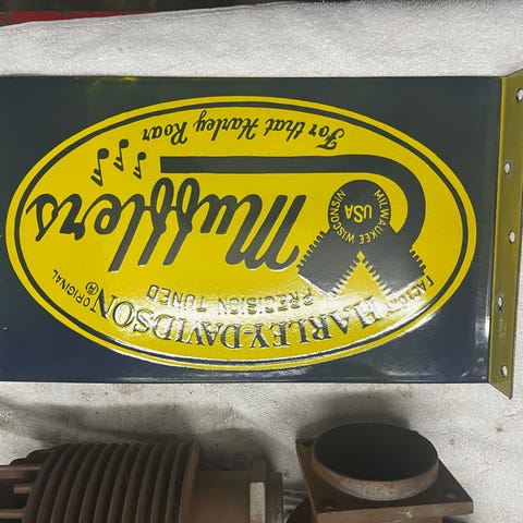 Indian Motorcykle metalskilt med rød og hvid farve. Skiltet har teksten 'Quality Products Indian Motorcycle Established 1901' og er fremstillet i metal. Skiltet har et vinklet design med huller til ophængning og logo på begge sider.