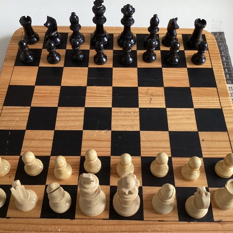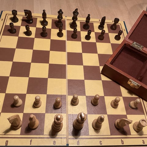 Skakspil i træ med brikker