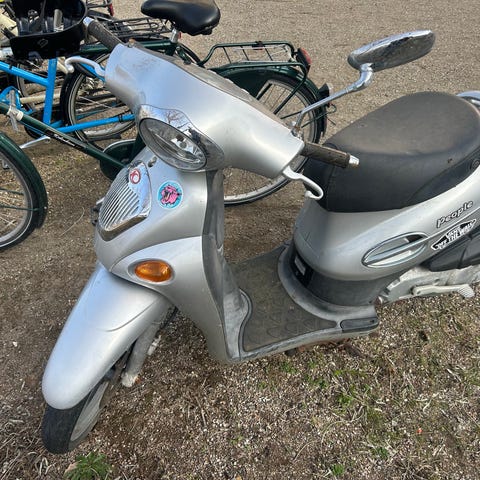 Skateboard med motor på. Kørte da den blev sat ind for et par år siden. Der skal kigges på lidt kabler og ledninger. Og så skal der nok renses karburator før den køre 100%