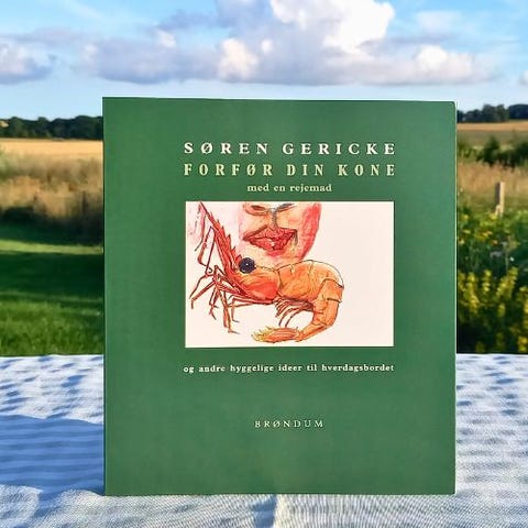 Søren Gericke Forfør din kone med en rejemand bog med opskrifter og idéer til hverdagsbordet. Udgivet af Brøndum, indeholder illustrationer og tekst om madlavning og madoplevelser.