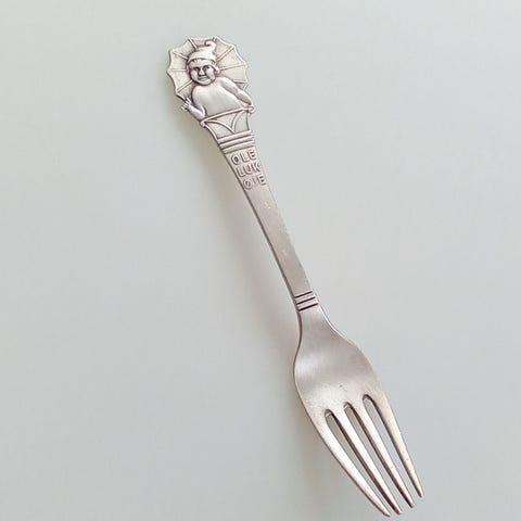 Ole Lukøje gaffel, ABSA sølv plet. Med inskription. Længde 16,5 cm. 50 dkk.