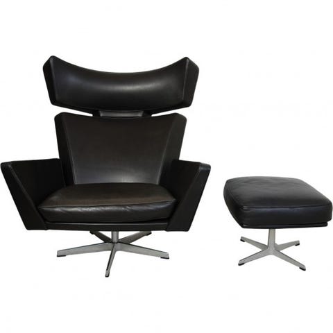 Fritz Hansen Arne Jacobsen Ox Chair med skammel i sort læder