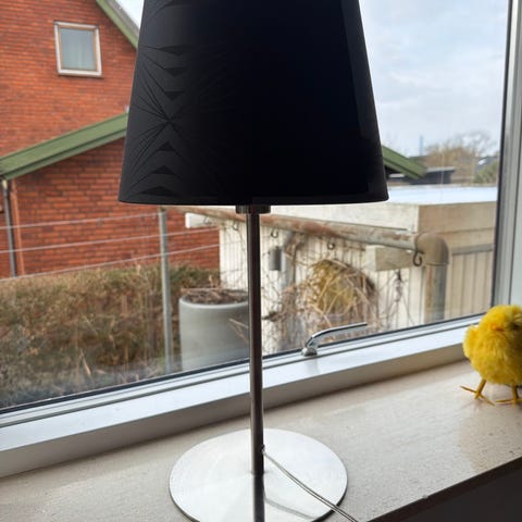 Georg Jensen med sort lampeskærm og rund metalfod. Lampen har et stilrent og enkelt udtryk med detaljer i skærmen. Den er egnet til brug som bordlampe i forskellige rum.