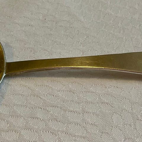 Barneske med lille hund fra B&J. Sølvplet 30. Længde 15 cm. 50 dkk.