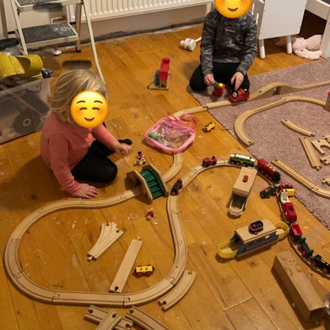 Skinnerne er kompatible med BRIO-skinner, og vognene er BRIO. Materialet er hård plastik.