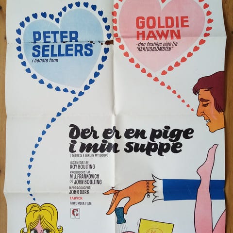 Due Per La Strada / Two for the Road (1967). Filmplakat (formentlig fra en italiensk biograf) med billede af et par liggende på en strand - skuespillerne Audrey Hepburn og Albert Finney.