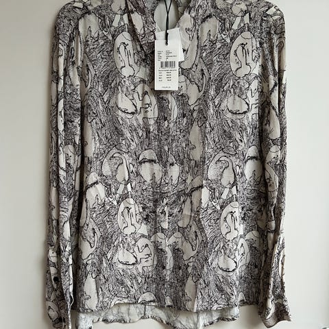 MbyM skjorte i størrelse L til kvinder. Skjorten er multifarvet og lavet af 100% viskose. Den har lange ærmer og knaplukning foran.Sender gerne dog ikke som Fiks og færdig