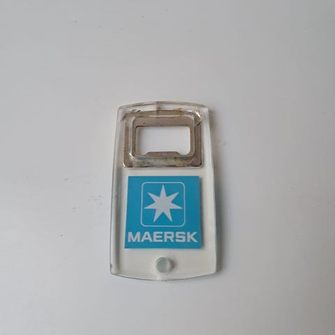 Maersk flaskeåbner i metal med logo. Velegnet til åbning af flasker.