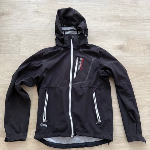 Flotte farver, kvalitets jakke med aftagelig indv. jakke, så der er faktisk 2 jakker. Den fungerer fint som jakke med et eller to lag, fra efterår til forår. Stor str. M, jeg (livvidde 90) kan have en tyk trøje på indenunder. Gode kraftige lynlåse, vindfang i ærmerne, indbygget hætte, aftagelig jakke er flot uden nullermænd og slid, indstillig i talje og ærmer.