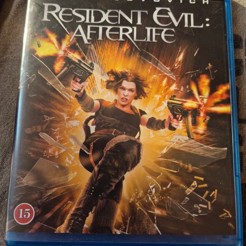 Resident Evil Afterlife Blu-ray film med dansk tekst. Filmen tilhører Resident Evil-serien og har aldersgrænse 15 år.