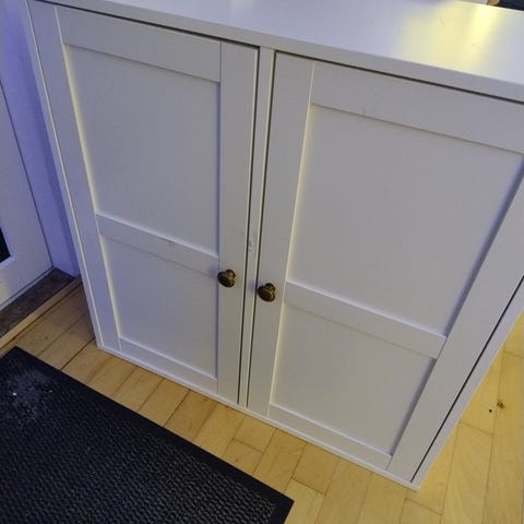 Brun kommode med skuffe og hylde