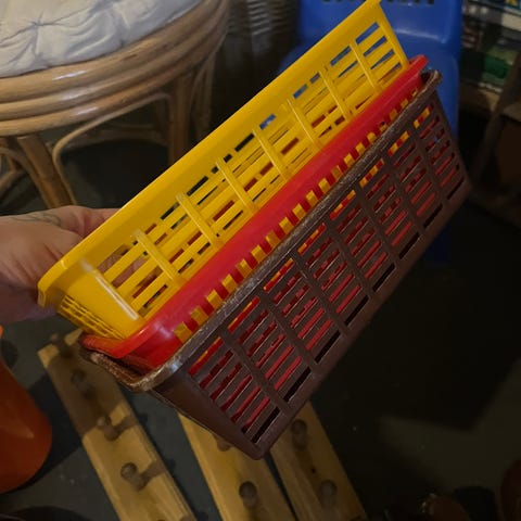 Små plast kurve de er brugte og der er 16 stk de måler 20 cm i længden og 10 cm i bredden og ca 5 cm i højden, der er 3 slags som alle ses på billederne prisen er for dem alle