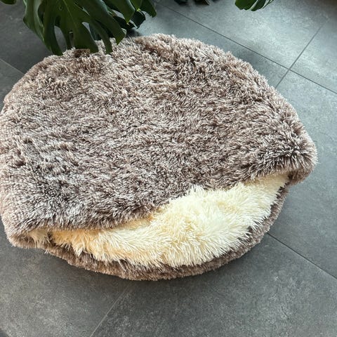 Brun hundekurv lavet af stofmateriale. Passer til hunde, der har brug for en blød og komfortabel soveplads.