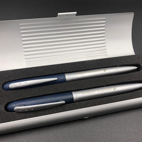 Pensil og kuglepen sæt med reklame i org. æske.