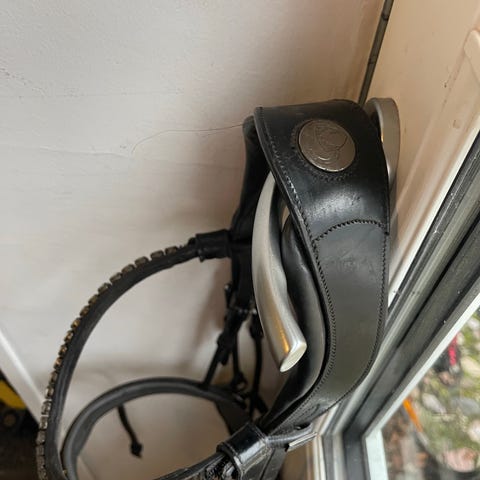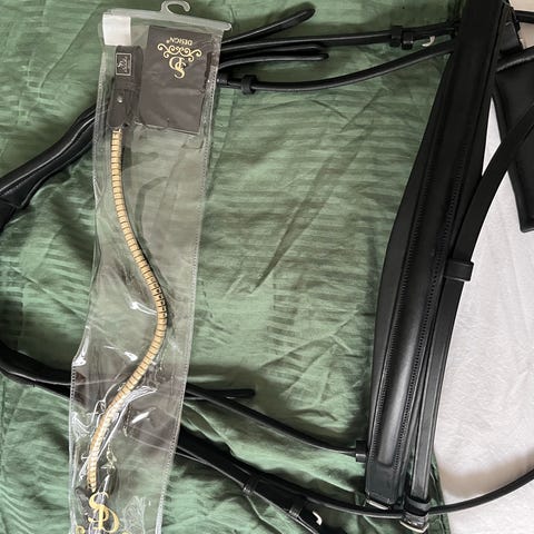 Trense i sort læder med glimmer på næsebånd og nakkestykke.