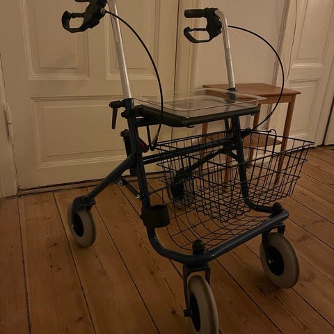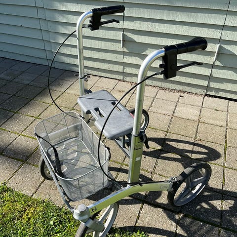 Rollator med sæde og kurv