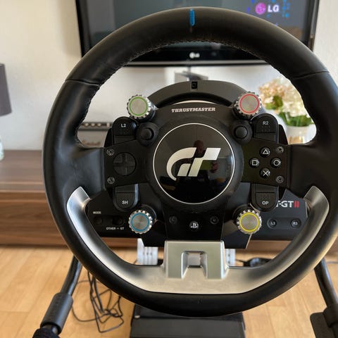 Thrustmaster T300 Racing Wheel med pedaler, til spil og simracing. Udstyret med tre metalpedaler til gas, bremse og kobling, samt et justerbart rat med knapper. Passer til flere PS3, PS4 og angiveligt også PS5. Rigtig godt sæt i god stand.