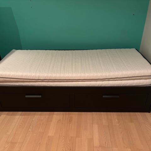 Denne superpraktiske seng fra IKEA har mange anvendelser. Fx en sofa om dagen og en seng til 1 – eller 2 – om natten. 2 store og renholdte skuffer giver masser af plads til dyner, puder og sengetøj. En smart løsning. Madras følger ikke. OBS madrasmål skal være 200 x 80 (enkelt) eller 200 x 160 (dobbelt). Fra ikke-ryger-hjem. Denne seng er hvid og uden helt skrammer eller brugsspor. Kun afhentning. Sendes ikke.