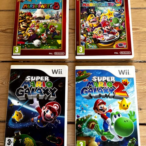 Super Mario, Luigi, Bowser, Princess Peach, 14 lejetøjs figurer + a question block, hovedsagelig fra McDonalds, nogle af dem er stadig i indpakning.