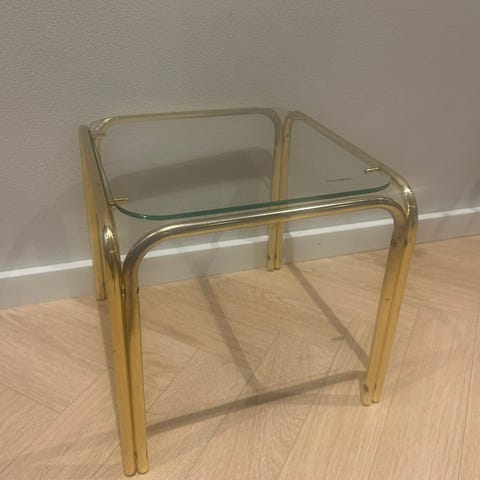 Fint vintage messingbord med røgfarvet glasplade og magasin / lp opbevaring under . Aldersbetingede brugsspor forekommer I form af lidt fregner på metal og lidt pletter ( måske kalk ) på glasplade ( kun pudset med lidt glas rens ) Sendes ikke , men kan afhentes på adressen.