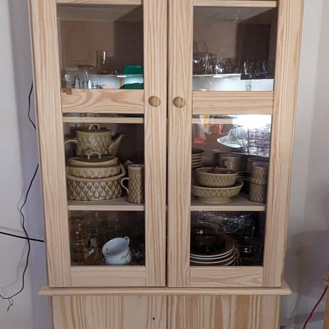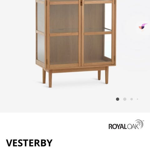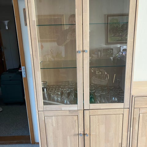 Næsten nyt vitrineskab i eg. Prisen er sat lav og fast, da det skal afhentes nu!!!!