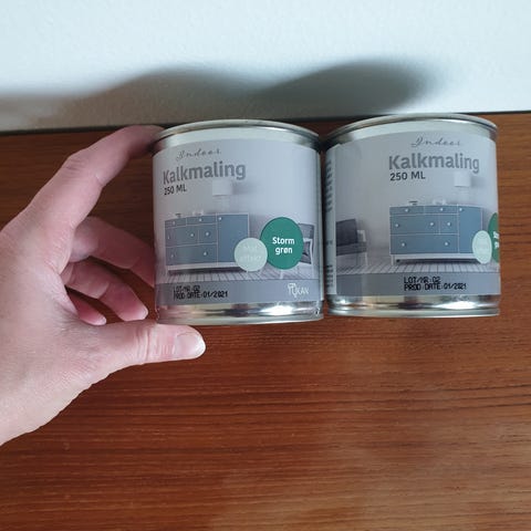 Kalkmaling bøtte, lyserød kalkmaling, ubrugt maling