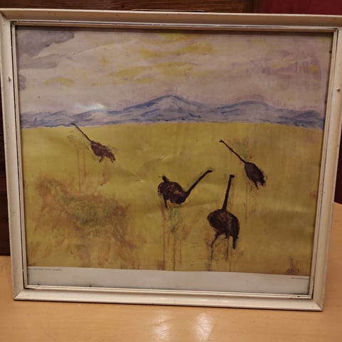 Smukt træsnit af Olivia Holm-Møller. Fra 1920. Titel: “Jonas historie “. I original træramme. Pæn stand , let bølget nederst.