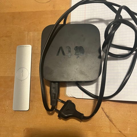 Apple TV 3. generation model A1427 med fjernbetjening og tilbehør. Enheden leveres med strømforsyning, fjernbetjening og monteringsbeslag. Anvendes til streaming af digitalt indhold til tv eller som AirPlay streamer da den har optisk lyd udgang(Toslink). Original emballage.