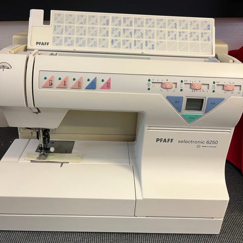 Syr kun ligeud op til ca. 6 mm. Er udstyret med Pfaffs trepunkts fremføring - hvilket er bedre end en walking foot. Det giver nogle stik der er meget nøjagtige. Bemærk det er en "H3" symaskine så højden under trykfoden er max ca. 12 mm.